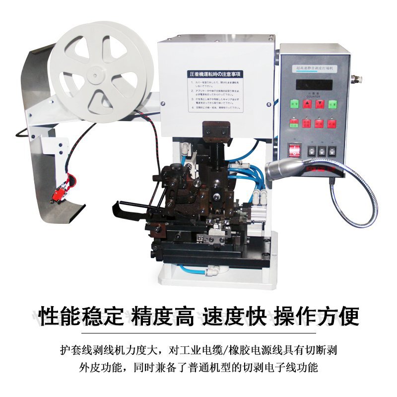 全自動(dòng)高速靜音剝皮打端機(jī)采用先進(jìn)的變頻技術(shù),對(duì)變速成馬達(dá)進(jìn)行精密控制,配有高精度控制模塊
