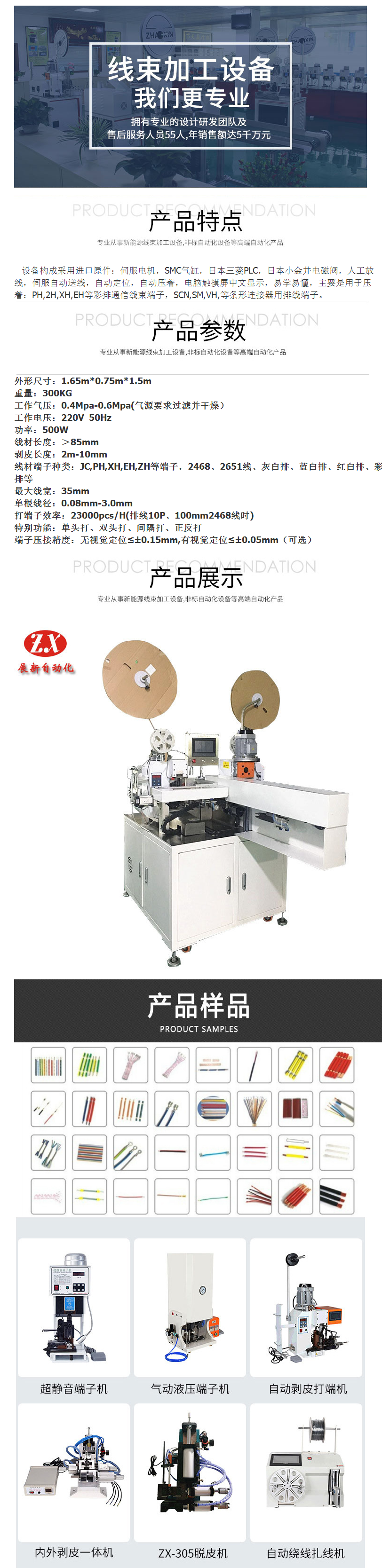 深圳市展新自動化設(shè)備有限公司成立于2003年,是一家專業(yè)生產(chǎn)線束末端加工設(shè)備的企業(yè),源于臺灣的生產(chǎn)技術(shù),以及臺灣的專業(yè)的技術(shù)人員,專業(yè)制造:全自動雙頭端子機(jī),全自動單頭端子機(jī),全自動伺服端子機(jī),全自動伺服沾錫機(jī)(單/雙頭),新能源壓接機(jī)等自動化設(shè)備。為繼電器行業(yè),電子電器行業(yè),汽車線束行業(yè),新能源線束加工等等,提升產(chǎn)業(yè)結(jié)構(gòu)起到巨大作用,為廈門宏發(fā)股份、河北申科集團(tuán)、順德美的集團(tuán)、湖南威勝集團(tuán)、三一重能、珠海格力集團(tuán)以及海內(nèi)外各大型電子生產(chǎn)廠商提供配套優(yōu)質(zhì)的產(chǎn)品及完善的售后服務(wù),已全面通過SGS認(rèn)證,ISO質(zhì)量認(rèn)證。 客戶遍布中國廣東、北京、上海、浙江、江蘇、湖南、山東.印度、中東、巴西等東南亞以及歐美市場。展新自動化,因為一顆顆專注之心;為客戶提供優(yōu)質(zhì)的設(shè)備!為客戶創(chuàng)造價值,在線束末端加工設(shè)備上精益求精 ! 整合國際資源,拓展海外市場,放眼未來,展新自動化將繼續(xù)保持精準(zhǔn)的技術(shù)創(chuàng)新的精心,敬業(yè)的態(tài)度,再創(chuàng)新的輝煌 !