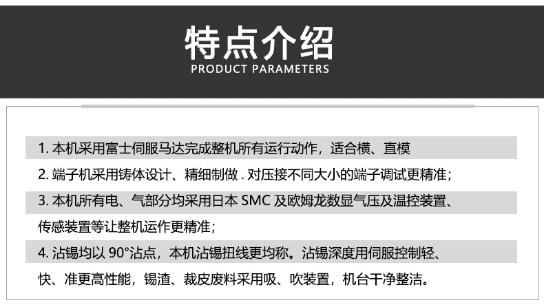 深圳市展新自動化設(shè)備有限公司成立于2003年,是一家專業(yè)生產(chǎn)線束末端加工設(shè)備的企業(yè),源于臺灣的生產(chǎn)技術(shù),以及臺灣的專業(yè)的技術(shù)人員,專業(yè)制造:全自動雙頭端子機,全自動單頭端子機,全自動伺服端子機,全自動伺服沾錫機(單/雙頭),新能源壓接機等自動化設(shè)備。為繼電器行業(yè),電子電器行業(yè),汽車線束行業(yè),新能源線束加工等等,提升產(chǎn)業(yè)結(jié)構(gòu)起到巨大作用,為廈門宏發(fā)股份、河北申科集團、順德美的集團、湖南威勝集團、三一重能、珠海格力集團以及海內(nèi)外各大型電子生產(chǎn)廠商提供配套優(yōu)質(zhì)的產(chǎn)品及完善的售后服務(wù),已全面通過SGS認(rèn)證,ISO質(zhì)量認(rèn)證。 客戶遍布中國廣東、北京、上海、浙江、江蘇、湖南、山東.印度、中東、巴西等東南亞以及歐美市場。展新自動化,因為一顆顆專注之心;為客戶提供優(yōu)質(zhì)的設(shè)備!為客戶創(chuàng)造價值,在線束末端加工設(shè)備上精益求精 ! 整合國際資源,拓展海外市場,放眼未來,展新自動化將繼續(xù)保持精準(zhǔn)的技術(shù)創(chuàng)新的精心,敬業(yè)的態(tài)度,再創(chuàng)新的輝煌 !