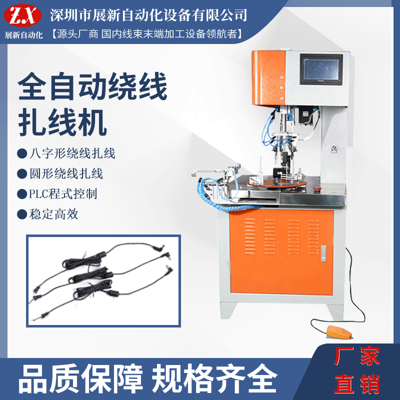 本機(jī)可大大降低員工疲勞強(qiáng)度,提高工作效率,節(jié)省扎帶,員工只需將線放在繞線盤上,踩踏腳踏開關(guān)自動(dòng)繞線,機(jī)器自動(dòng)將繞好的線放到扎線口處,機(jī)器自動(dòng)扎帶。