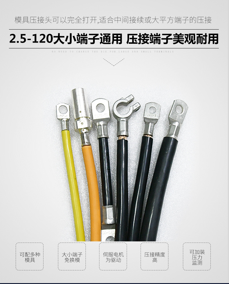 1.彩色觸摸屏2.PLC自動化控制系統(tǒng)3.操作簡單,工作平穩(wěn)4.四段式壓接,降低損耗,延長機械使用壽命