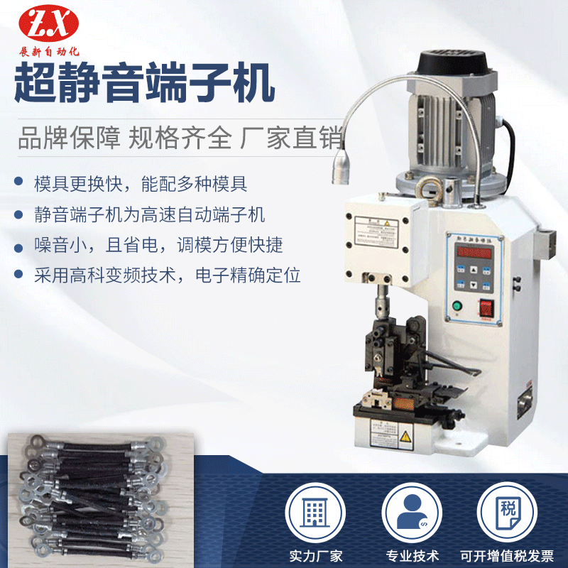 2、靜音端子機(jī)為高速自動(dòng)端子機(jī),模具更換快,速度穩(wěn)定,能配多種模具,機(jī)臺(tái)操作簡(jiǎn)單維修容易,針對(duì)高產(chǎn)量低維修客戶(hù)節(jié)省其故障期所產(chǎn)生的成本浪費(fèi)而設(shè)計(jì),且外形美觀(guān)、優(yōu)雅,讓廠(chǎng)內(nèi)更覺(jué)得高尚先進(jìn)。