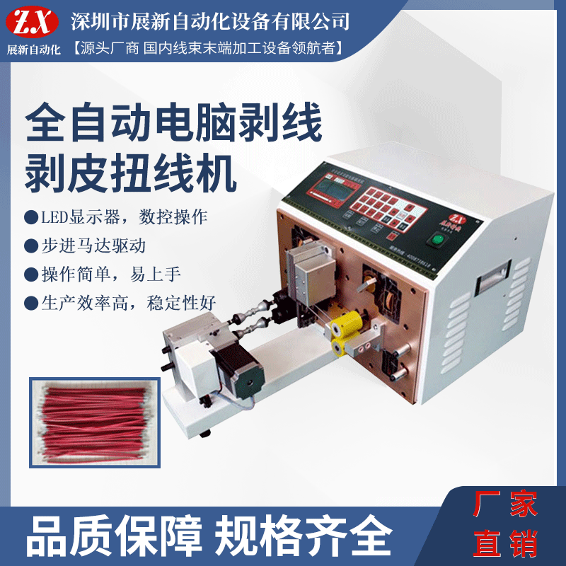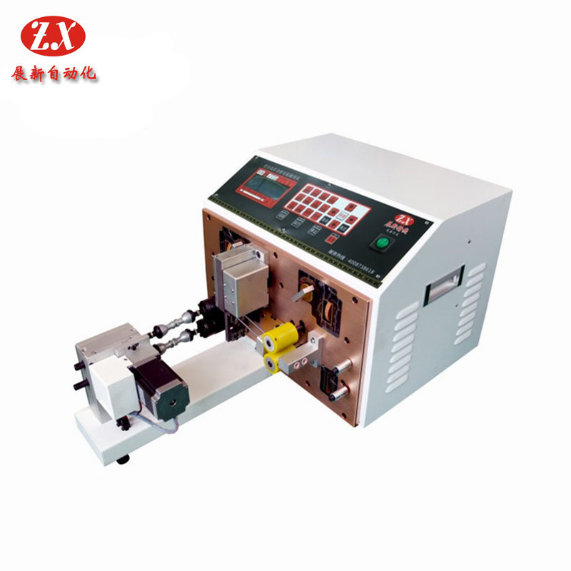 最近電子產(chǎn)品傾向輕、薄、短、小之要求,故所需電線也傾向細線、短線、及高精度,本機正好能發(fā)揮其更大長處。以往被視為很難加工的50MM之內(nèi)的短線,現(xiàn)在并沒有任何困難,甚至總長度只有1MM時,兩端也可同時各剝皮0.3MM,同時可分別設(shè)定送線、進刀、退刀再脫皮及脫皮速度對于隔離線也可強制脫皮到99MM,排除了以往隔離線不能全剝及傷到心線之困擾。